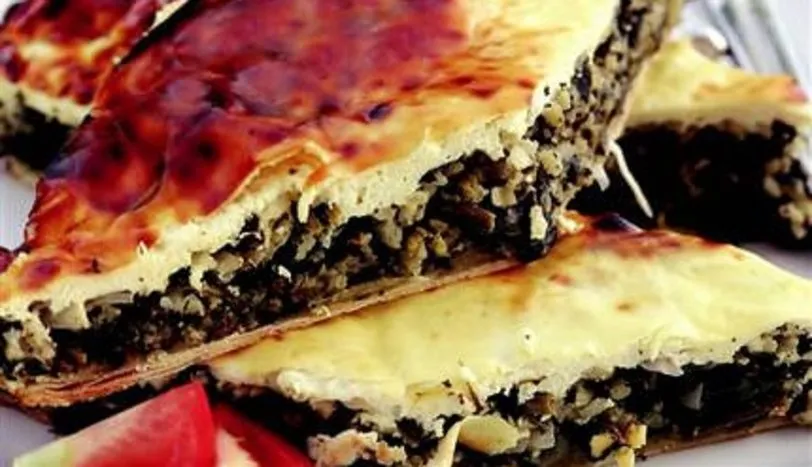 Hamur için, derin bir kaba yumurta, zeytinyağı, un ve tuzu alın. Üzerine azar azar ılık su ilave ederek kulak memesi yumuşaklığında bir hamur hazırlayın. Üzerini ıslak bir bezle örtüp kenara alın. Diğer taraftan, iç harcını hazırlamak için ıspanağı temizleyip yıkayın. İrice kıyın ve haşlayın. Sudan çıkarıp elinizle iyice sıktıktan sonra kenara alın. Haşlama suyunu dökmeyin. Tereyağını bir tavaya alıp küp doğranmış soğanı rengi dönene kadar kavurun. Üzerine yıkanıp süzülmüş pirinci ilave edin. Pirincin rengi beyazlaşınca üzerine ıspanağı ilave edin. İyice karıştırın ve 2-3 dakika pişirin. Daha sonra ıspanağı haşladığınız sudan bir buçuk su bardağını harca ekleyin. Nane ve tuz ilave edin. Suyunu çekene kadar pişirip ocaktan alın ve ılınmaya bırakın. Dinlenen hamuru unlanmış tezgahta açın. Üzerine 2 çorba kaşığı eritilmiş tereyağı sürün. Hamuru kenarlarından ortaya doğru, ortada bir pasta tabağı büyüklüğünde alan kalacak şekilde 6 parça halinde kesin. Kenarları ortada toplayın. Elinizle bastırın. Yeniden tepsinizden biraz daha büyük olacak şekilde açın. Tepsinizi üzerine koyup hamuru kesin. Daha sonra tepsiye yerleştirin. Üzerine ıspanaklı ve pirinçli harcı dökün. Yumurta ve yoğurdu iyice çırpıp böreğin üzerine yayın. Önceden ısıtılmış 200 derece fırında 25-30 dakika pişirin. Dilimleyerek servis yapın.