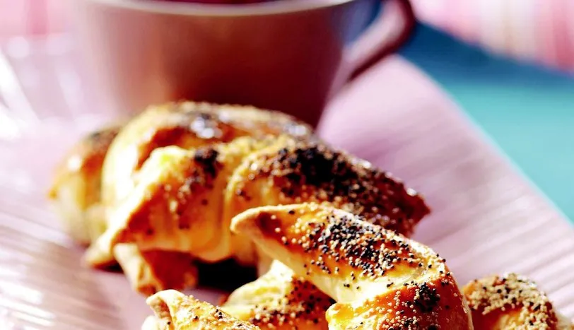 Margarin, yoğurt, sıvı yağ, 1 adet yumurta ve diğer yumurtanın akı (sarısını üzerine sürmek için ayırın) ve kabartma tozunu derin bir kaba alın. Kulak memesi yumuşaklığında bir hamur elde edene kadar un ilave edip, yoğurun. İçi için patatesi sıcakken bir kabın içinde ezin. İçine rendelenmiş kaşar peyniri katıp, karıştırın ve soğutun. Kıyılmış maydanoz, tuz, karabiber ve pul biber ilave edin. Hamuru 8 eşit bezeye ayırın. Bezelerden birini pasta tabağı büyüklüğünde açın ve önce boylamasına daha sonra enlemesine kesip, 4 parça elde edin. Diğer hamurları da aynı şekilde hazırlayın. Her parçanın geniş ucuna patatesli iç harçtan koyun ve rulo yapıp, ay şekli verin. Çörekleri yağlanmış fırın tepsisine yerleştirin. Üzerine yumurta sarısı sürüp, haşhaş tohumu serpin. Önceden ısıtılmış 170 derece fırında üzerileri kızarana kadar pişirin. Sıcak veyaılık olarak servis yapın.