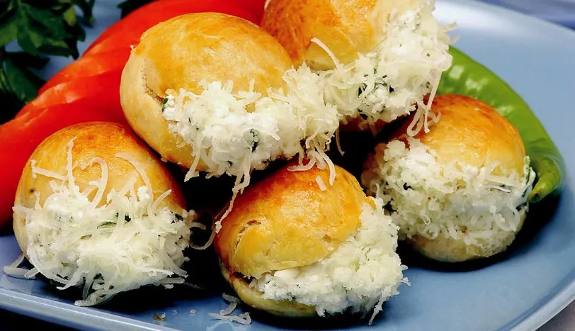 Ilık sütün içine şekeri ve mayayı katıp karıştırın. Mayanın erimesi için 10-15 dakika bekletin. Unu eleyiportasını havuz şeklinde açın. Açtığınız havuzun içine mayalı sütü, tuzu ve sıvı yağı ekleyin. Unla beraber bütünmalzemeyi karıştırıp yumuşak bir hamur yapın. Hamuru mayalanması için yarım saat bekletin. Mayalanmış hamurdan küçük parçalar alıp yuvarlak şekil verin. Yağlanmış tepsiye dizin. Üzerlerine yumurta sarısı sürün. Önceden ısıtılmış 180 derece fırında pişirin. Yoğurt, beyaz peynir ve kıyılmış maydanozu karıştırın. Soğuduktan sonra poğaçaların arasını kesin. Poğaçaların arasına beyaz peynir, süzme yoğurt ve maydanozkarışımından koyun. Son olarak poğaçaların kenarından gözüken peynirli karışımı kaşar peyniri rendesinebatırıp servis yapın.