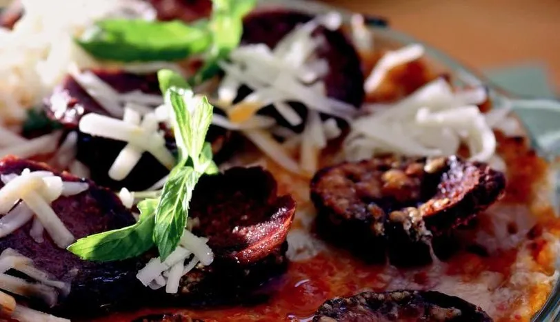 Mercimek ve suyu bir tencereye koyup kapağı yarı kapalı olarak pişmeye bırakın. Mercimek yumuşayınca ocaktan alıp üzerine bulguru ekleyin. Kapağı kapalı olarak şişmesini sağlayın. Diğer taraftan zeytinyağını bir tavaya alıp ince kıyılmış soğanı rengi dönene kadar kavurun. Üzerine salçayı ilave edip 1-2 dakika kavurduktan sonra, mercimeğe ekleyin. Tuzunu ayarlayıp harmanlayın. Malzemeyi, yağladığınız bir fırın kabına pizza altı oluşturacak şekilde yerleştirin. Üzerine rendelenmiş kaşar peynirinin yarısını serpin. Aralıklı olarak sucukları dizin. Önceden ısıtılmış 200 derece fırında 10 dakika pişirin. Fırından alınca kalan kaşar peynirini serpin ve dilimleyerek servis yapın.