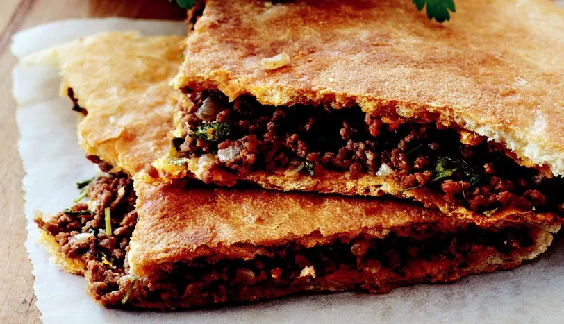 Unun ortasını havuz gibi açıp, yaş maya, süt, yoğurt, sıvı yağ, tuz ve yumurta ekleyin. İyice yoğurup, iki eşit parçaya ayırın. Tava genişliğinde açıp, kenara alın. Harç için kıyılmış soğanı sıvı yağda soteleyin. Kıyma ekleyip sotelemeye devam edin. Tuz ve karabiberini ayarlayın. Hamurun bir parçasını yapışmaz yüzeyli tavaya yerleştirin. Üzerine harç yayıp, ikinci hamurla kapatın. Kısık ateşte önlü arkalı kızartın. Dilimleyip servis yapın.