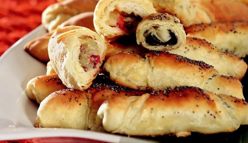 Zeytin Ezmeli ve Pastırmalı Mini Kruvasan