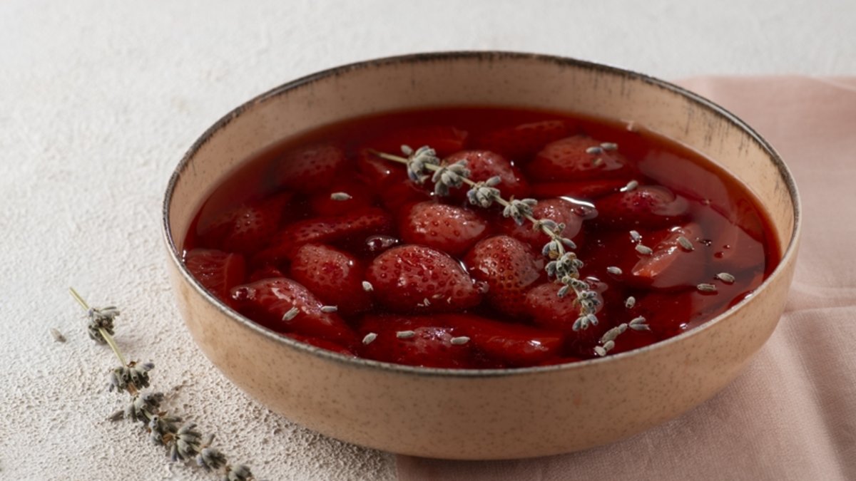 Tam mevsiminde çilekle yapabileceğiniz hoş kokulu lavantalı çilek kompostosu tarifi.