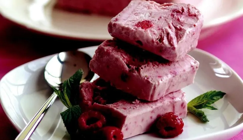 ahududulu karışıma yedirin. Dilediğiniz şekildeki bir kalıba parfe karışımını boşaltın. Kenara ayırdığınız ahududuları içine ve üzerine serpin. Derin dondurucuda dondurun. Servis yapmadan önce çıkarın ve kabından kolay ayrılması için sıcak suyun içinde 1-2 dakika bekletin. Daha sonra servis tabağına ters çevirip çıkarın ve dilimleyerek servis yapın