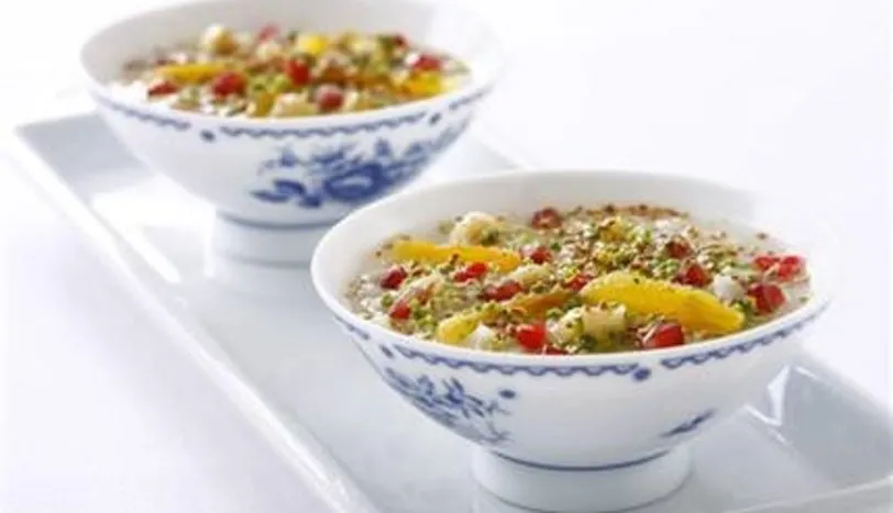 Fasulye ve nohudu bir gece boyunca en az 6 saat, 1 çay kaşığı tuz ilave edilmiş ılık suyun içinde şişinceye kadar bekletin. Ertesi gu¨nu¨ Magicook'u çalıştırıp ''menu¨''den ''aşure hazırlık'' programını seçin. Nohut ve kuru fasulyeyi hazneye yerleştirin. Üzerini geçecek kadar su ilave edin ve ''başla''ya basın. 14 dakika ön ısıtmadan sonra 35 dakika 100C de nohut ve fasulyeleri pişirecek program tamamlandığında Magicook sesli uyaracaktır. Su¨reyi 14 dakika daha hızlandırmak isterseniz hazneye sıcak su koyabilirsiniz. Fasulye ve nohutların ön haşlama su¨reci bittiğinde hazneden çıkartın ve aynı şekilde buğdayı hazırlayın. Ön hazırlıklar bittikten sonra Magicook'ta haşlamış olduğunuz buğdayın u¨zerine iyice yıkanıp su¨zu¨lmu¨ş pirinci aktarıp u¨zerine 8 kademesine kadar sıcak su ilave edin. ''menu¨''den ''aşure'' programını seçip ''başla''ya basın. Toplam pişirme su¨reci 1,5 saattir. Ayrıca ''pişirme zamanı'' bölu¨mu¨nden 1-4 saat arasında ayar yapabilirsiniz. Magicook 80-100 derece arasında pişirme yapmaktadır. 50 dakika sonra daha önceden ön haşlamasını yaptığınız fasulye ve nohudu ekleyin. 10 dakika sonra da şekerini serpin. Zaman göstergesinde son 5 dakika kala 2 gr tuzu ilave edin. Su¨re bittiğinde aşureniz hazırdır. Aşureyi sıcakken servis kaselerine paylaştırın. İsteğe göre ju¨lyen doğranmış kuru kayısı, kavrulmuş susam, nar taneleri, zar şeklinde doğranmış kiraz şekerlemesi ve antepfıstığı içi ile su¨sleyebilirsiniz. İsterseniz aşureyi buzdolabında birkaç saat beklettikten sonra servis yapın.