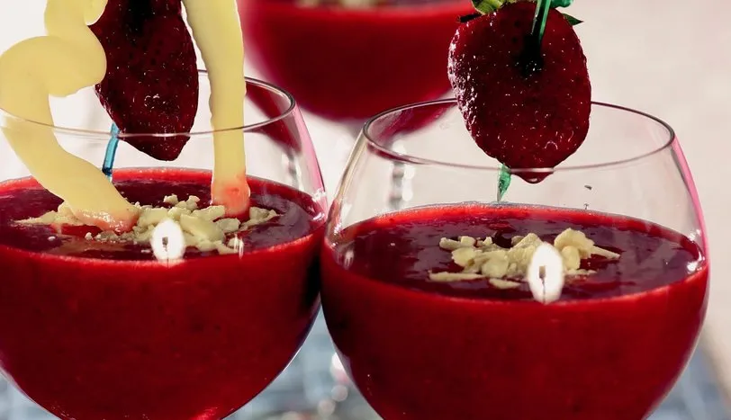 Çilekleri temizleyip blendere alın. Üzerine buzları ekleyin ve birlikte çekin. Püreyi bardaklara paylaştırıp rendelediğiniz beyaz çikolatayı üzerine serperek servis yapın.