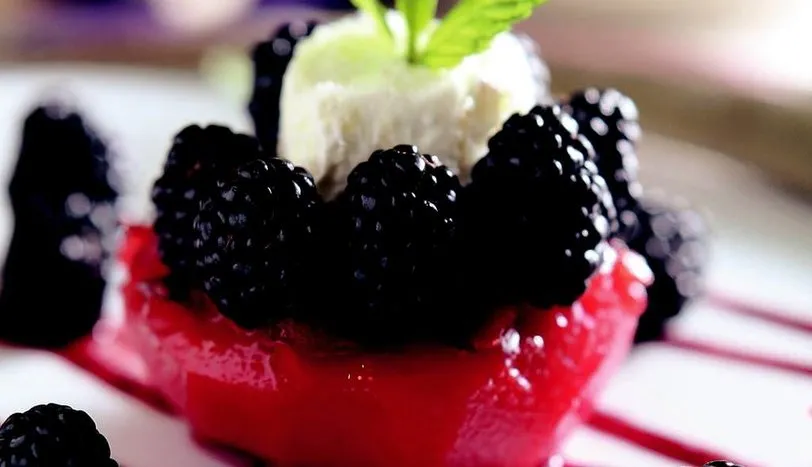 Ayvaları yanlamasına ortadan ikiye bölüp temizleyin. Çekirdeklerini bir fırın tepsisine yerleştirin. Üzerine ayvaları koyun. Elmaların kabuklarını soyup rendeleyin ve ayvaların ortalarına pay edin. Üzerlerine toz şeker serpin. Su, karanfil, yeşil çay ve arnavut biberini tepsiye ekleyin. Tepsiyi alüminyum folyo ile kaplayıp bir gece oda sıcaklığında bekletin. Ertesi gün tepsinin üzerindeki folyoyu çıkarıp, önceden ısıtılmış 220 derece fırında ayvalar yumuşayana kadar (ara sıra tepsideki şerbeti bir kaşıkla ayvaların üzerine gezdirerek) pişirin. Soğuduktan sonra servis tabaklarına alıp, üzerlerine böğürtlen koyun. Kaymak eşliğinde servis yapın.