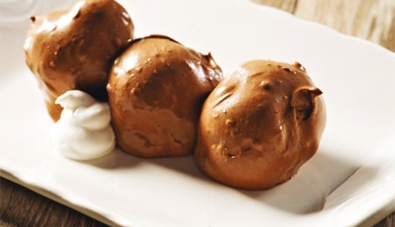 Hazırladığınız kremayı, krema torbasına alıp, top hamurların içine doldurun. Kremayla doldurduğunuz topları çikolatalı sosa batırıp buzdolabında en az 4 saat beklettikten sonra servis yapın.