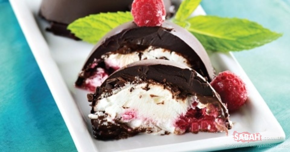 Krem şanti ile soğuk sütü çırpıp kalınlaşmasını sağlayın. Süzme yoğurt ekleyip tekrar çırpın. Ahududuyu ekleyip hafifçe karıştırarak kalıptaki çikolataların içini doldurun. Kalan çikolatayı üzerlerine yayın ve donması için tekrar derin dondurucuda en az 2 saat bekletin.