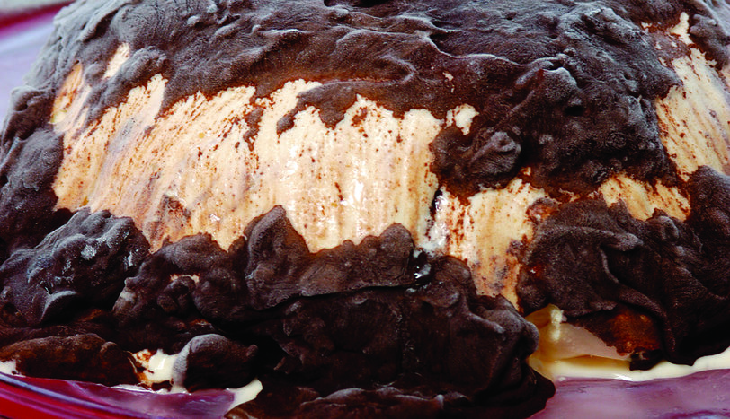 Tüm malzemeyi mikserden geçirin. Derin bir kalıba alüminyum folyo yerleştirin. Karışımı içine dökün. Derin dondurucuya koyun. En az 4 saat bekletin. Bu arada sos için, tüm malzemeyi karıştırıp, ocakta koyulaştırın. Dolaptan aldığınız parfenin üzerine ılık sosu döküp, tekrar derin dondurucuya koyun. Birkaç saat daha bekletip, dilimleyerek servis yapın.