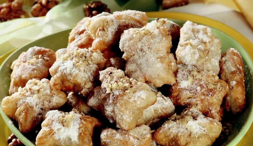 Milföy hamurlarını dörde bölün. Her bir hamurun ortasına ceviz içi ve rendelenmiş çikolata koyun. Hamuru bohça şeklinde katlayın. Hamurlar bitene kadar aynı işlemi uygulayın. Kızgın sıvı yağda kızartın. Servis tabağına alın. Üzerine dövülmüş ceviz ve pudra şekeri serperek servis yapın.