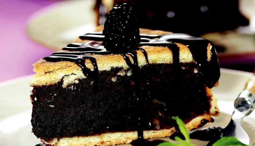Hamuru hazırlamak için, eritilmiş margarini unla beraber yoğurun. İçine yumurta sarısı, kabartma tozu, süt ve tuz katarak kulak memesi kıvamında bir hamur hazırlayın. Hamuru ikiye ayırın. Bir parçasını tart kalıbının kenarlarını da örtecek büyüklükte açıp kalıba yerleştirin. İkinci hamur parçasını kalıbın büyüklüğü kadar açıp bir kenara alın. İç malzemesi için, suyu bir kapta kaynatıp çikolatayı içine atın ve eritin. Margarini de üzerine ekleyip çikolatalı sosu hazırlayın. Ayrı bir kapta yumurta ve toz şekeri mikserle çırpın. İçine çikolatalı sosu katın. Rendelenmiş portakal kabuğu, un ve ceviz içini ilave ederek bütün malzemeyi karıştırın. Çikolatalı malzemeyi tart kalıbının içine yayın. Kenarda bekleyen hamur parçasını da sosun üzerine yayıp kenarlarını hafifçe bastırın. Önceden ısıtılmış 180 derece fırında 30-35 dakika pişirin.