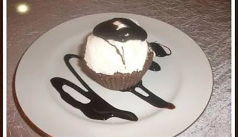 -Ben kaymaklı dondurma ile servis yapıp çikolata sosu ile süsledim.