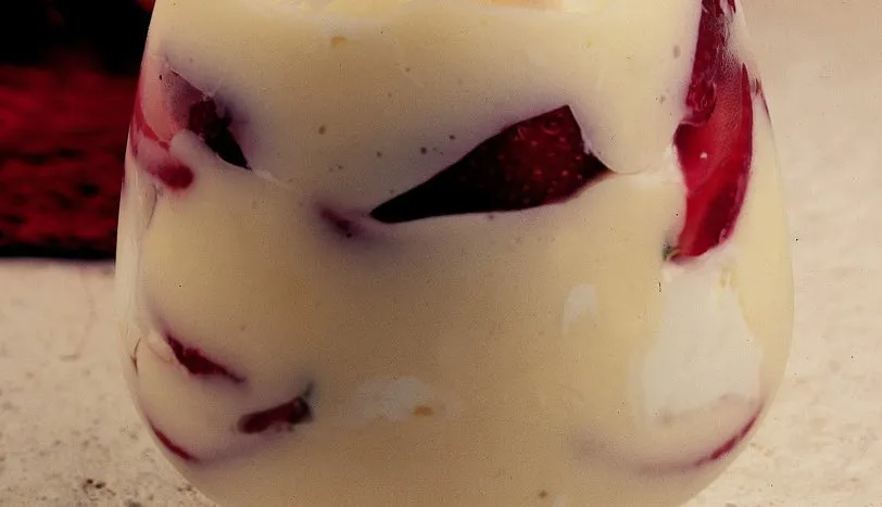 Bir kaba temizlenmiş ve ortadan ikiye kesilmiş çilekleri koyun. Brandy ve tozşekeri ilave edin. Hafifçe karıştırın ve yarım saat dinlenmeye bırakın. Bu arada limonlu krema için 1 adet yumurta, 2 adet yumurtanın akı ve tozşekeri açık renkli bir karışım elde edene kadar çırpın. Limon suyunu ekleyip tekrar karıştırın. Süt ve kremayı ekleyip, çırpma teliyle çırpın. Kabı benmari usulü, kısık ateşte hafifçe kaynatın. Limon kabuğunun üçte ikisini elma soyar gibi (beyaz kısımlarını kesmemeye dikkat ederek) soyduktan sonra kremalı karışıma ekleyin. Krema koyulaşana kadar karıştırarak pişirin ve limon kabuğunu içinden çıkarın. Su ve buz dolu bir kaba krema kabını oturtup, ara sıra karıştırarak soğumasını sağlayın. Diğer yandan kremayı soğuk bir kababoşaltın. Pudraşekeri ve vanilyayı ilave edip, mikserle çırpın. Limonlu kremanın yarısını kuplara pay edin. Sosuyla birlikte çileklerin yarısını da kuplara koyun. Diğer kremanın yarısını, ardından da limonlu kremanın geri kalanını kuplara dökün. Sırayla tüm malzemeyi bitirdikten sonra kalan çilekle ve incecik kesilmiş limonkabuklarıyla süsleyin. Bir saat buzdolabında bekletin ve servis yapın.AŞÇININ NOTUKremayı çelik veya dibi tutmayan bir tencerede pişirin.Limonun asidinden etkilenmemesi için alüminyum tencere kullanmayın.