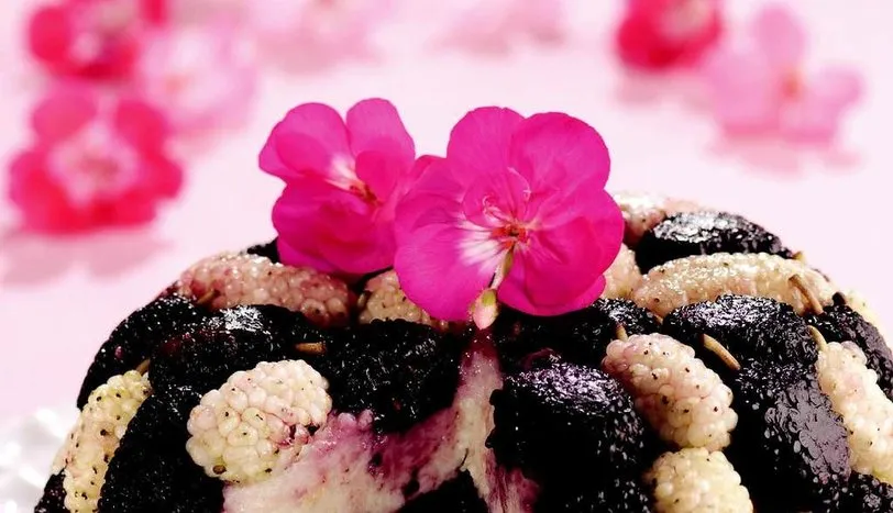 Süt, yumurta sarısı, irmik, 2 çorba kaşığı toz şeker ve limon kabuğunu tencereye alıp, ocağa oturtun. Çırpma teliyle sürekli karıştırıp, koyu kıvam alana dek pişirin. Tereyağını ekleyip ocaktan alın. Muhallebiyi ikiye ayırın. 1 su bardağı kara dut ve 2 çorba kaşığı toz şekeri blenderden geçirip, ayırdığınız muhallebinin yarısı ile karıştırın. Nişasta ekleyip, kısık ateşte kıvam alana dek pişirin. Derin cam bir kasenin içini streç filmle kaplayın. Kara ve beyaz dutları kasenin altına ve yanlarına yerleştirin. Üzerine, bitene kadar bir kat sade, bir kat kara dutlu muhallebiyi yayın. Kenardan sarkan streç filmi üzerine kapatın. Bir gece buzdolabında dinlendirip, servis tabağına ters çevirip çıkarın. Dilimleyip, soğuk olarak servis yapın.