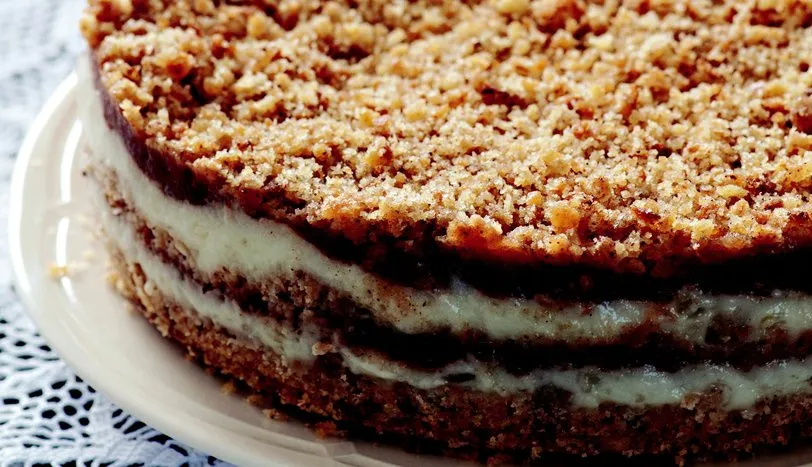 Elma püresi için elmaların çekirdek yataklarını çıkarıp, küçük doğrayın. Su, tarçın, toz şeker ve karanfil ekleyip iyice pişirin. İçinden karanfilleri çıkarıp blenderden geçirin. Soğumaya bırakın. Ayrı bir yerde ekmeği rondodan geçirip kenara alın. Tereyağını tencerede eritin. Üzerine toz şeker, tarçın ve ekmek ilave edip altın sarısı renk alana dek kavurun. Süt ve dolgu kremasını iyice çırpıp kenara alın. Kelepçeli bir kalıbın altını yağlı kağıtla kaplayın. Üzerine kavrulmuş ekmeğin 1/3'ünü yayın. Sıra ile dolgu kremasının yarısını, ardından elma püresinin yarısını ekmeğin üzerine yayın. Aynı işlemi bir kez daha tekrarlayın. En üste, kalan kavrulmuş ekmeği serpiştirin. Önceden ısıtılmış 180 derece fırında 30 dakika pişirin. Fırından alıp soğumaya bırakın. Daha sonra buzdolabında 4-5 saat dinlendirin. Soğuk olarak servis yapın.