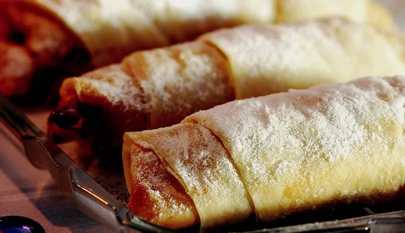 Yufkaları üçgen biçiminde kesin. İç kısımlarına fırça ile yağ sürün. Elmaların kabuklarını soyup rendeleyin.Rendelenmiş elmayı, bal ve tarçın ile karıştırın. Yağladığınız yufkalara eşit miktarlarda bu karışımdan koyup,sarın. 200 derece fırında 25 dakika kadar pişirin. Üzerini pudraşekeri ile süsleyerek servis yapın.