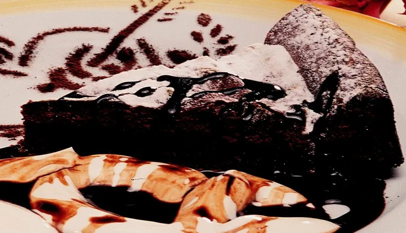 Margarin ve bitter çikolatayı benmari usulü eritin. Un, yarım paket vanilya ve 5 adet yumurtanın sarısını ilave edip, karıştırın. Ayrı bir yerde 10 çorba kaşığı toz şeker ve yumurta aklarını mikserle çırpın. Ilınan çikolatalı karışıma ekleyin. Tahta bir kaşıkla karıştırın. Yuvarlak bir kek kalıbına hamuru boşaltın. 200 derece fırında yaklaşık 35 dakika pişirin. Fırından aldıktan sonra, krema ve çikolata sos ile servis yapın.