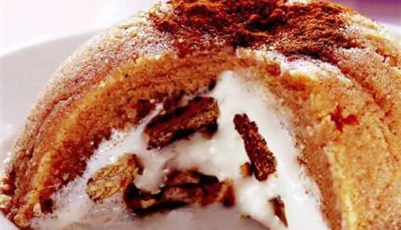 Bir kasenin içini streç filmle kaplayın. Ortası boş kalacak şekilde bastırarak irmik helvası yerleştirin. Boş kısma 1 top dondurma ve küp doğranmış Halley yerleştirin. Üzerini irmik helvasıyla kapatın. Servis tabağına ters çevirip çıkarın. Kalan malzemeyi de aynı şekilde hazırlayın. Tarçın serpip servis yapın.