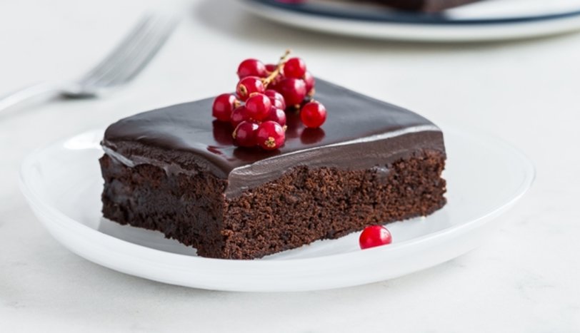 Tatlı tamamen soğuyup ganaj da ılınınca üzerine dökün ve buzdolabında soğumaya bırakın. Ganajı donduktan sonra Frenk üzümü veya dilediğiniz meyvelerle süsleyerek servis yapın.