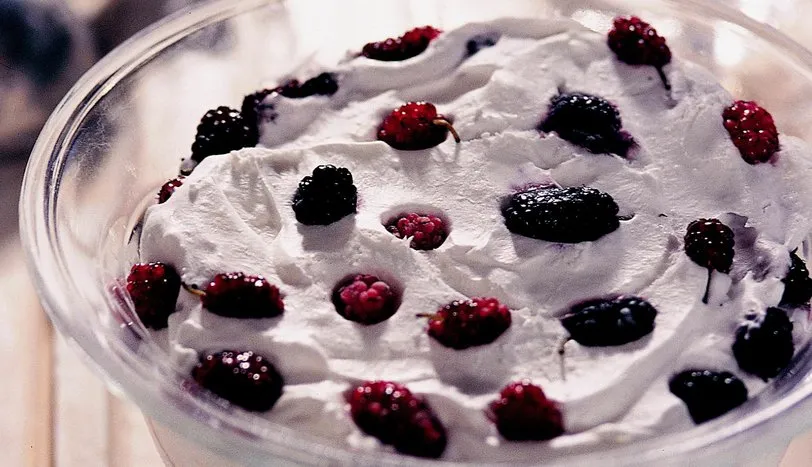 Vanilya çubuğunu diklemesine ikiye kesin ve bir kaba aktarın. Üzerine tozşeker ve 5 çorba kaşığı suyu katarak, kısık ateşte pişirin. Tozşeker eriyip, hafif tıkırdayana dek kaynadıktan sonra ocağın altını kapatın. Bu arada yumurta sarılarını, yüksek hızda, krema kıvamı alıp kokusu gidene dek çırpın. Çırpılmış yumurtaları hazırladığınız sıcak şurubun içine çok yavaşça akıtın. Çırpıcıyı bu işlemde de kullanın. Ayrı bir kapta kremayı çırpın. Yumurtalı şurubu, ağır ağır kremaya akıtın. Malzemeyi iyice çırpın. Son olarak üzerine dutları ekleyin. Bir kaşıkla karıştırın. Dondurmayı uygun bir kalıba boşaltıp buzluğa koyun. Donunca, buzluktan çıkarıp, karadutla süsleyerek servis yapın.