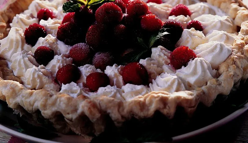 Milföy hamurunu oda sıcaklığında bekletip yumuşamasını sağlayın. 22-24 cm çaplı bir tart kalıbını yağlayın. Milföy hamurunu kalıbın içine yerleştirin. Hamurun üzerine yağlı kağıt yerleştirip üzerine ağırlık yapması için bir avuç nohut atın. 210 derece fırında hamurun kenarları pembeleşinceye kadar pişirin. Fırından çıkartıp nohut ve yağlı kağıdı hamurun üzerinden alın. Hamuru tekrar fırına verin. İyice kızarınca fırından çıkartın. Tam olarak soğumadan kalıptan çıkartın. Diğer taraftan kremayı pudra şekeri ile çırpıp kabartın. Labne peyniri ile çırpın. Karışımı hamurun ortasına yayın. Üzerine koca yemişleri dizin. Dilimleyerek servis yapın.