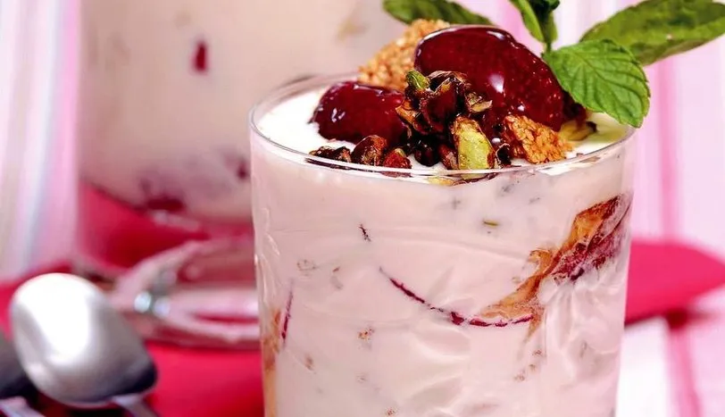 Süt, toz şeker, damla sakızı, un ve nişastayı derin bir tencereye alıp, karıştırarak pişirin. Kıvamlı bir hal alınca, 1-2 dakika daha kaynatıp ocaktan alın. Hazırladığınız muhallebiyi karıştırarak soğutun. Krem şanti ekleyip, çırpın. Çilekleri temizleyip doğrayın. Muhallebinin yarısını kuplara veya bardaklara pay edin. Üzerlerine doğranmış çileklerin yarısını ve susamlı antep fıstıklı krokanların yarısını yerleştirin. Kalan muhallebiyi üzerlerine paylaştırın. Kalan çilek, susamlı-antep fıstıklı krokanla süsleyin. Bal döküp servis yapın.