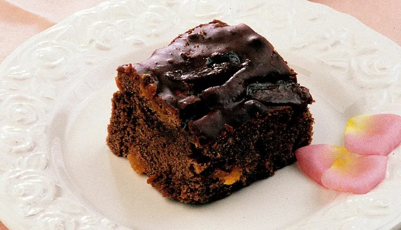 Yumurtaları toz şekerle çırpın. Sütü, ardından oda sıcaklığında margarini, kakao, kabartma tozu ve unu son olarak da portakal kabuğu rendesi ile kıyılmış kuru meyveleri ekleyin. Hafif yağlanmış fırın kabına hamuru boşaltın. Önceden ısıtılmış 180 derece fırında 40-45 dakika pişirin. Fırından çıkarıp, soğutun. Çikolatayı benmari usulü eritin. Kolay sürülmesi için 2 kaşık süt ekleyin. Brownie'nin üzerine yayın. Donunca servis yapın.