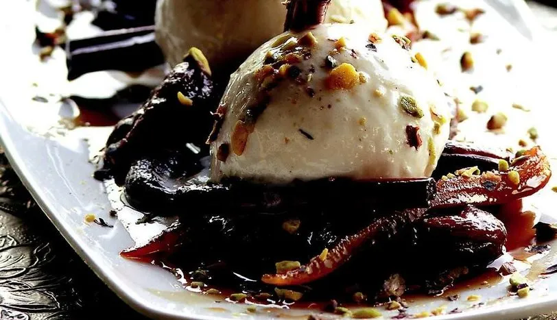 Portakal kabuğu şekerlemesini boylamasına, serçe parmak kalınlığında dilimleyin. Tüm malzemeyi derin bir kaba alıp harmanlayın. Önceden ısıtılmış 180 derece fırında kaynayana dek pişirin. Fırından alıp soğumaya bırakın. Servis tabağına alıp dondurmayla birlikte servis yapın.AŞÇININ NOTUDilerseniz tatlıyı, 1 tatlı kaşığı rom ve 1 çay bardağı kırmızı şarap ekleyerek farklı bir yorumla da hazırlayabilirsiniz.