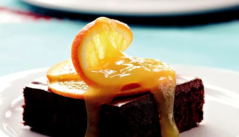 Çikolatayı iri parçalara ayırıp, benmari usulü eritin. Kakao ve suyu ilave edip, karıştırın. Çikolatanın bulunduğu kabı, sıcak su bulunan kabın içinden alın ve kremayı ekleyin. Pürüzsüz bir hale gelene kadar karıştırıp, soğumaya bırakın. Yumurta ve tozşekeri derin bir kapta çırptıktan sonra çikolatalı karışıma katıp, 1-2 dakika daha çırpın. Krem şantiyi soğuk sütle çırpın ve rendelenmiş portakal kabuğunu ekleyin. Çikolatalı karışıma ilave edip, tekrar çırpın ve alüminyum kağıt serili dikdörtgen bir kaba yarısını boşaltın.