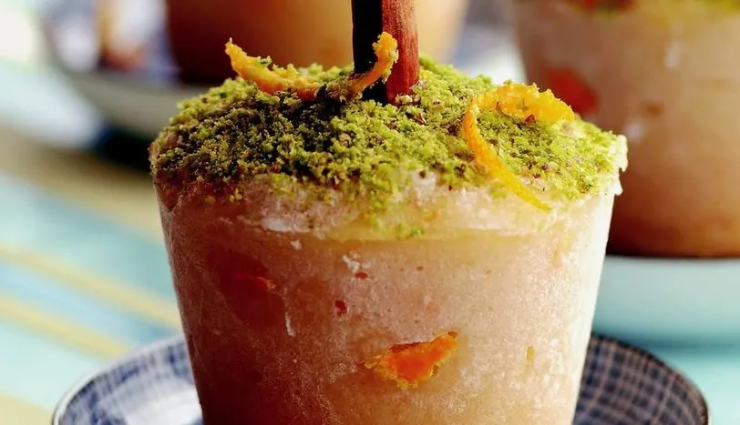 Portakalların suyunu sıkıp, 2 su bardağı portakal suyu elde edin. Ayvaların kabukların soyun. Çekirdek yataklarını çıkarıp, büyükçe doğrayın. Ayvaları derin bir tencereye alıp, üzerine portakal suyu, rendelenmiş portakal kabuğu, limon suyu, vanilya özü ve toz şeker ekleyin. Tencerenin kapağı açık olarak 20-30 dakika, ayvalar yumuşayana dek pişirin. Jelatini soğuk suda yumuşatıp, suyunu sıkın. Ayvaları blenderden geçirip tabağa alın. Üzerine jelatini ekleyip, sıcak pürede eritin. Hazırladığınız püreyi iri delikli süzgeçten geçirip soğumaya bırakın. Püreyi küçük kaplara pay edin. Ortalarına çubuk tarçınları batırın. Bir gece derin dondurucuda dinlendirin. Dondurmalı küçük kapları sıcak suya batırıp, dondurmaları kaplardan çıkarın. Bu şekilde 15 dakika buzdolabının alt rafında dinlendirin. Dilediğiniz şekilde süsleyip servis yapın.