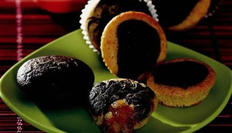 Mikser yardımıyla yumurta, şeker, portakal kabuğu ve 1 su bardağı portakal suyunu 10 dakika çırpın. Kalan portakal suyunu ilave edip çırpmaya devam edin. Mısır yağı, un ve kabartma tozunu katarak iyice yoğurun. Hamuru iki parçaya ayırın. Yarısına kakaoyu ekleyip, karıştırın. Minik kağıt kek kalıbına 1 çorba kaşığı kakaolu karışımdan, üzerine sade karışımdan koyun. Kürdan yardımıyla bu hamuru karıştırın. Hamur bitene kadar işleme devam edin. Önceden ısıtılmamış 150 derece fırında 15 dakika pişirin.