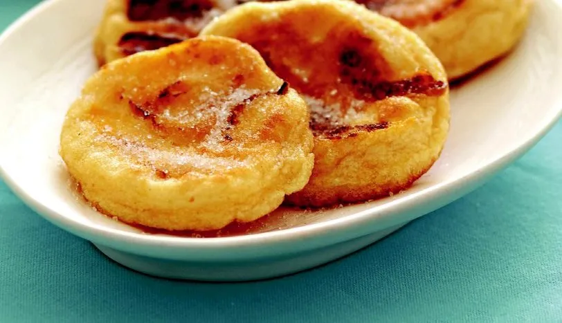 Yumurtaların akını ve sarısını ayırın. Sarıları bir kaba alıp üzerine pudra şekeri ve süt ekleyip çırpın. Vanilya ve kabartma tozu ekleyip çırpmaya devam edin. Un ilave edip karıştırın. Yumurta aklarını bir tutam tuzla kar haline gelene dek çırpıp çorba kaşığı yardımıyla hamura ekleyin. Hafifçe karıştırın. Kayısıların çekirdeklerini çıkarıp dilimleyin. Geniş bir tavaya 2 çorba kaşığı sıvı yağ koyup kızdırın. Hamurdan 1 çorba kaşığı alıp tavaya yerleştirin. Çevirmeden hemen önce üzerine kayısı serpiştirin. Arkalı önlü pişirip servis tabağına alın. Kalan hamuru da aynı şekilde hazırlayın. Üzerine toz şeker serpip servis yapın.Afiyet olsun ..