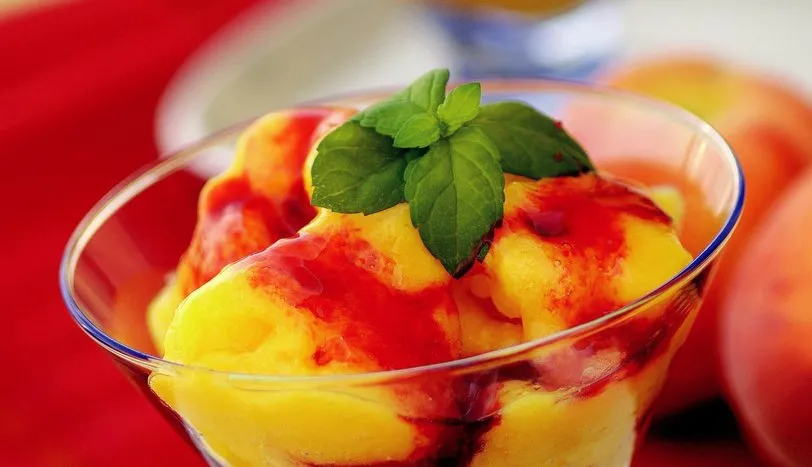 Toz şeker ve suyu 3-4 dakika, toz şeker eriyene kadar kaynatın. Şerbeti soğumaya bırakın. Şeftalileri kaynar suda 1 dakika bekletin. Sudan alarak kabuklarını soyup, çekirdeklerini çıkarın. Blenderden geçirin. Limon suyu ile karıştırın. Üzerine soğuyan şerbeti gezdirin. Buzdolabında hafifçe dondurun. Buzdolabından alarak başka bir kaba aktarın ve iyice karıştırın. Eski kabına yerleştirin. İyice donması için yeniden buzdolabına koyun. Servis yapmadan 5-6 dakika önce buzdolabından çıkararak servis yapın.