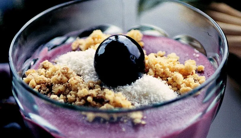Siyah üzümleri iyice yıkayıp derin bir tencereye alın. Üzerine toz şekeri gezdirin. Suyu ekleyip kısık ateşte bir buçuk saat kadar kaynatın. Su azaldığında bir miktar su ekleyebilirsiniz. Kaynama işlemi bittikten sonra karışımı blenderden geçirin. Tekrar tencereye alıp, bir çırpma teli yardımı ile mısır ununu ekleyip karıştırın. 5-10 dakika daha kaynatın. Bu arada sürekli karıştırarak, dibinin tutmamasına dikkat edin. İkinci defa kaynattıktan sonra süzgeçten geçirin. Servis yapacağınız kuplara paylaştırın. Tatlılar ılındıktan sonra, birkaç saat buzdolabında bekletin. Üzerini ceviz, fındık ve hindistan cevizi ile süsleyip servis yapın.
