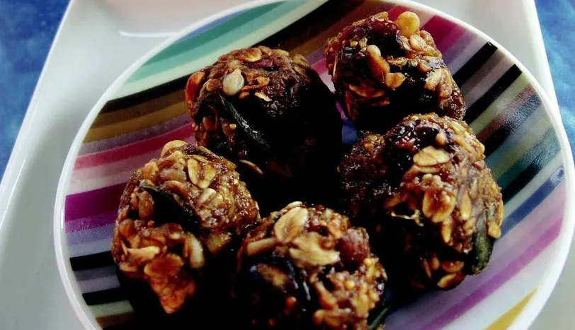 üzüm suyuna. Biraz iri kıyılmış ceviz, kayısı, yulaf gevreği, badem, çekirdek ve yaban mersini kattım. Eğer tadı çok tatlı ya da sevdiğiniz kadar tatlı değilse, bal veya pekmez ilave edebilirsiniz. İyice karıştırıp, elinizi çok hafif ıslatarak, yuvarlak şekil verin ve yağlı kağıt serili fırın tepsisine dizin. 100 derecede (en düşük fırın ısısı), kapağı az aralık olarak iyice kuruyana dek pişirin (elinize yapışmamalı). Tarhananız iyice soğuduğu zaman kavanoza ya da bez torbalara aktarabilirsiniz.