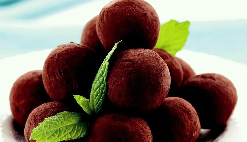 Kremayı bir tavaya alın ve kaynama noktasına gelene kadar ısıtın. Naneyi elinizle irice kopararak üzerine ilave edin ve tencereyi ocaktan alın. 10 dakika sonra kremayı süzün ve naneyi içinden çıkarın. Çikolatayı irice parçalara ayırın ve kremaya katın. Çikolatayı benmari usulü eritin ve hafif soğuyana adar buzdolabında bekletin. Daha sonra dolaptan çıkarın ve mikserle 30 saniye çırpın. Tekrar buzdolabına koyun ve elinizle şekil verebilecek hale gelene kadar soğutun. Harçtan küçük parçalar koparın ve avucunuzun içinde yuvarlayarak, toplar yapın. Kakaoya bulayın ve servis tabağına alın.