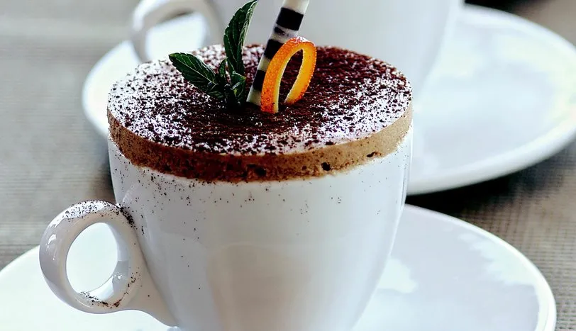 Yumurtaların aklarını ve sarılarını ayrı kaplara aldıktan sonra sarısına üç çorba kaşığı tozşeker ekleyerek iyice çırpın. Akına da bir çorba kaşığı toz şeker ekleyin ve kar halini alıncaya dek çırpın. Çırpılmış yumurta akını ve sarısını birbirine iyice yedirin. Az çırpılmış kremayı, Türk kahvesini,m erittiğiniz bitter çikolatayı yumurtalara ekleyerek karıştırın. Servis yapacağınız fincan veya kuplara karışımı alarak buzdolabının alt rafında 2 saat dinlendirin. Çıkardığınızda üzerine Türk kahvesi serpiştirin. Dekoratif çubuk çikolata, nane ve portakal kabuğu ile süsleyin. Yanında bisküvi ile servis yapın.