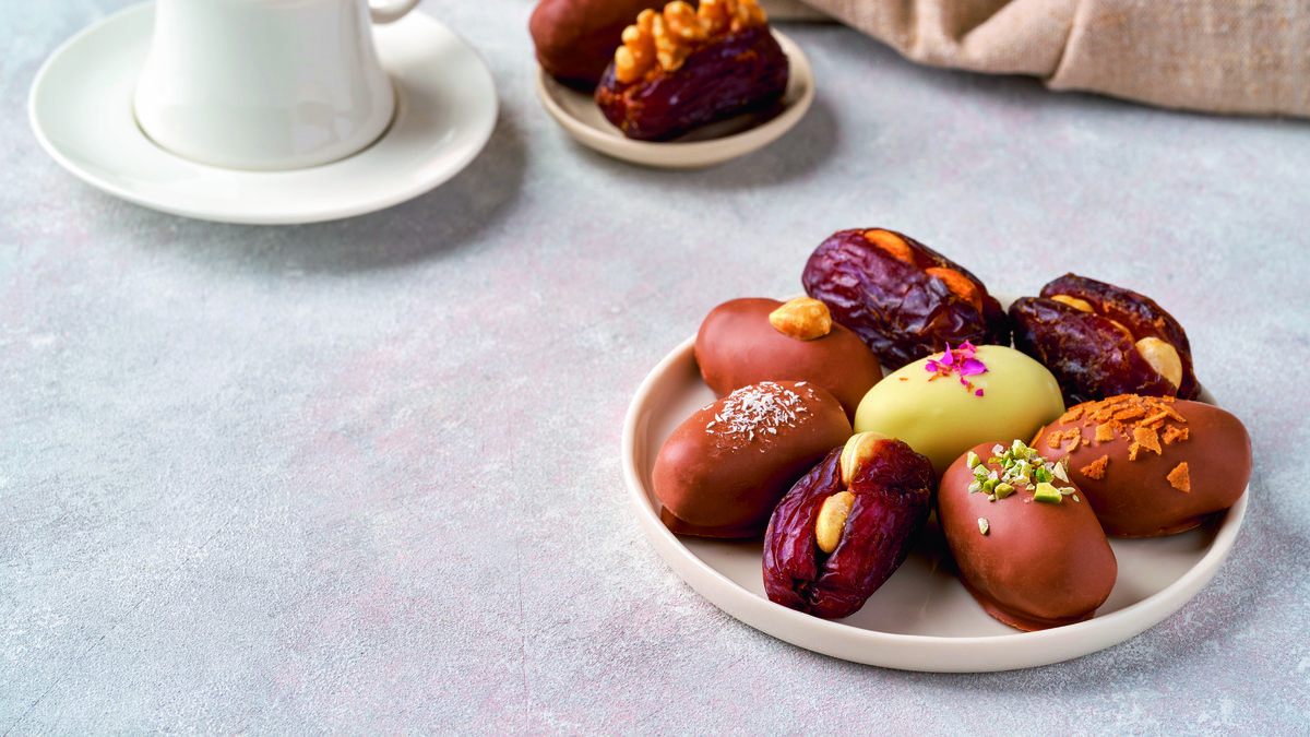Rendelenmiş portakal kabuğunu pişirme kağıdı üzerine alıp oda ısısında 30 dakika dinlendirin. Çikolatayı benmari usulü eritin. Hurmaların çekirdeklerini çıkarın.