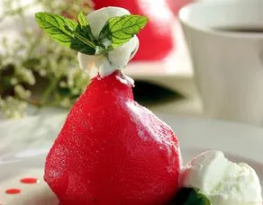 Yeşil çayı su ile demleyin. Daha sonra tencereye çayın suyunu ve tanelerini aktarın. Toz şekeri ilave edin. Toz şeker eridiğinde kabuklarını temizlediğiniz elmaları tencereye yerleştirin. Karanfilleri de suya atarak pişmeye bırakın. Arada kontrol ederek elmalar piştiğinde ocağın altını kapatın. Elmaları sudan alarak soğuk veya ılık olarak muhallebi ve vişne ile birlikte servis yapın.