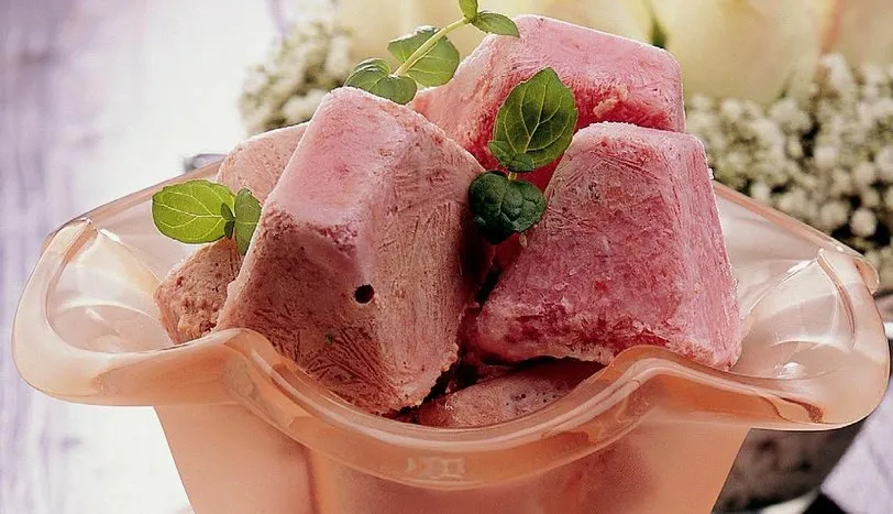 Çilekleri blenderden geçirin. Yoğurt, şeker ve bisküvi ekleyin. Tekrar blenderden geçirin. Karışımı buz kalıplarına dökün. 3-4 saat buzlukta bekletin. Kuplara alıp, erimeden servis yapın.