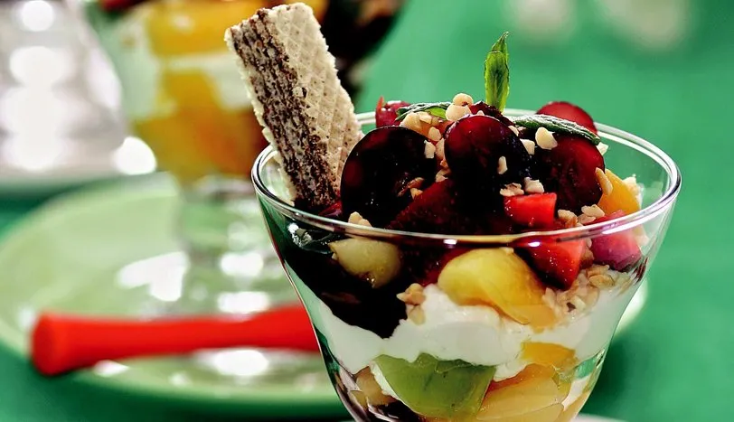 Kayısıları akşamdan kaynar suya koyup kapağı kapalı olarak bekletin. Kiviyi soyup doğrayın. Kayısı, çilek ve üzümleri ikiye bölün. Tüm meyveleri bir kaba alıp üzerine limon suyu gezdirin ve kenara alın. Yoğurdu bir tülbente koyup süzün. Daha sonra balla karıştırın. Yoğurt ve meyveleri kuplara paylaştırın. Üzerlerine bal gezdirin. Gofretleri yerleştirip servis yapın.AŞÇININ NOTUKupları arzunuza göre farklı meyvelerle de hazırlayabilir ve benmari usulü erittiğiniz çikolata ile de süsleyebilirsiniz.