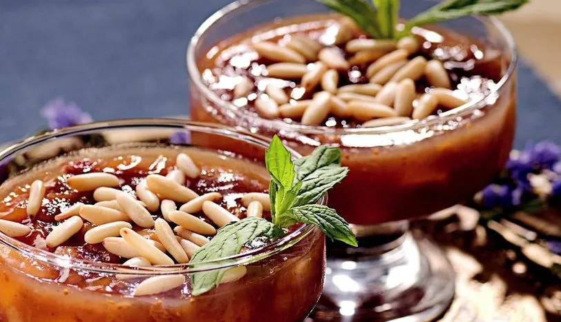 Bir gece önceden kayısı, incir, üzüm ve hurmayı yıkayın. Hurmanın çekirdeklerini çıkarın, daha sonra tüm kuru meyveleri küp doğrayın. Ayrı kaplarda ıslatın. Ertesi gün derin bir kaba suyu alın. Üzerine nişasta ve toz şeker koyup iyice karıştırın. Ocağa oturtun ve sürekli karıştırarak 10 dakika pişirin. Diğer taraftan başka bir kaba aldığınız pekmezin üzerine kuru meyveleri ilave edip 5 dakika pişirin. Daha sonra kaynamakta olan nişastalı karışıma ekleyin. 5 dakika birlikte pişirip ocaktan alın. Servis tabaklarına aktarın. Ilındıktan sonra buzdolabında soğutun. Üzerine dolmalık fıstık ekleyerek servis yapın.