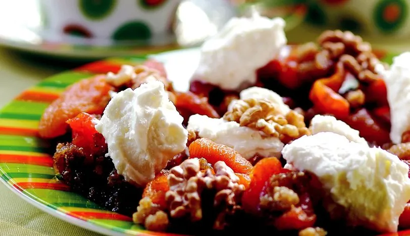 Kayısı ve dutları iyice yıkayın. Üzerinden sıcak su geçirip siyah suyunu akıtın. Süzülmüş meyveleri bir tencereye alın. Üzerine yarım su bardağı suyu gezdirip kaynatın. Kaynayınca tereyağını ekleyip kısık ateşte suyunu çekene kadar pişirin. Tencerenin kapağı kapalı şekilde bekletip soğumasını sağlayın. Servis tabağına alıp kaymak ve cevizle servis yapınAŞÇININ NOTUKullanılacak kuru kayısının açma kayısı denilen, ikiye bölünüp kurutulan kayısı olması gerekiyor.