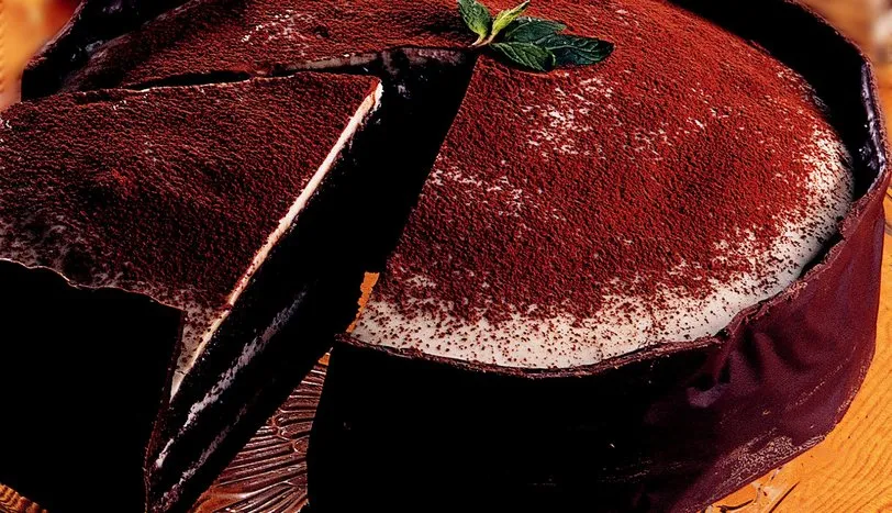 Öncelikle fırını 180 dereceye ayarlayın. Daha sonra 20 cm çapında yuvarlak bir kek kalıbını yağlayın ve yağlı kağıtla kaplayın. Küp doğranmış tereyağını toz şekerle birlikte mikserle çırpın. Yumurtaları teker teker ekleyin. Vanilya ve kahveyi de katıp çırpmaya devam edin. Un, kakao, karbonat, ayran ve sıvı yağı da ekleyip, metal bir kaşıkla bütün malzemeyi karıştırın. Hazırladığınız karışımı kek kalıbına boşaltın ve 180 derece fırında 45 dakika pişirin. Fırından aldığınız keki, 10 dakika beklettikten sonra ızgara teli üzerine çıkartıp soğumasını bekleyin. Harcı için, krema, krem peynir, pudra şekeri ve vanilyayı bir kasede metal kaşıkla karıştırın. Keki bir bıçakla enlemesine 3'e kesin. İlk parça keki servis tabağına alın. Harcın 1/3'ünü kekin üzerine sürün. İkinci parça keki üzerine kapatın. Kalan harcın yarısını üzerine sürün ve üçüncü kek parçasını kapatın. Artan harç ile üzerini kaplayın. Kenarları için, bitter çikolatayı benmari usulü eritin ve ocaktan alın. 70x75 cm boyutunda kestiğiniz yağlı kağıt üzerine bıçak yardımıyla bitter çikolatayı yayın. Kekin etrafına sarın. Buzdolabında soğutun. Çikolata tamamen donunca, yağlı kağıdı turtadan ayırın. Üzerine küçük bir süzgeçle kakao serpip, servis yapın.