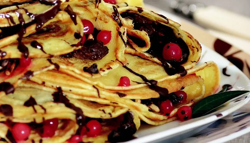 UN, toz şeker ve sütü çırpıp 20 dakika bekletin. Üzerine yumurtaları, yumurta sarısını ve tuzu ilave edin. Yapışmaz yüzeyli bir tavaya 1 çorba kaşığı sıvı yağ döküp kızdırın. Hazırladığınız hamurdan 1 çorba kepçesi alarak tavaya dökün ve arkalı önlü pişirip yağlı kağıt üzerine alın. Hamur bitene kadar her seferinde tavaya 1 çorba kaşığı sıvı yağ dökerek krepleri pişirin. İç harcı hazırlamak için frenk üzümü hariç tüm malzemeyi geniş bir kaba alarak harmanlayın. Harcı kreplere paylaştırın. En son üzerine biraz frenk üzümü serpip ikiye katlayın. Bitter çikolatayı benmari usülü eritip kreplerin üzerine gezdirerek servis yapın.