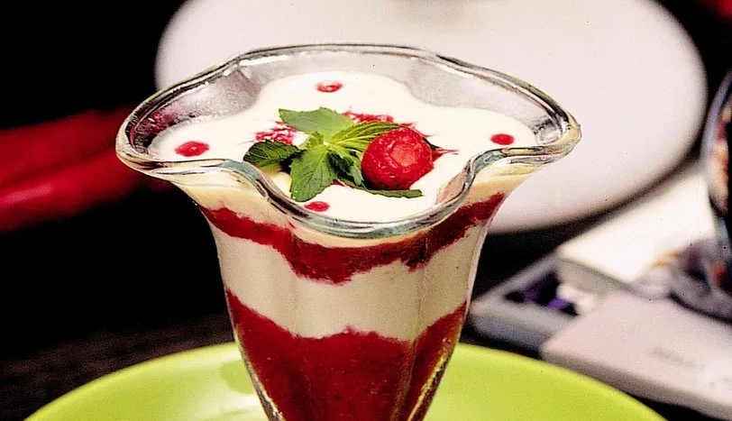 Sos için, çilek ve toz şekeri blenderden geçirerek püre haline getirin. Buzdolabında bekletin. Beyaz çikolatayı benmari usulü eritin. Sütü, üç seferde, azar azar ve karıştırarak çikolataya ekleyin. Çikolatanın eridiği kabı sıcak sudan alıp ılınmaya bırakın. Kremayı mikserle kıvamlı bir hal alıncaya kadar çırpın. Başka bir kabın içinde yumurta akını, bir tutam tuz ilave ederek mikserle kar haline getirin. Çırpılmış yumurta akının yarısını çikolataya ekleyip karıştırın. Daha sonra kalan yumurta akını, vanilyayı ve çırpılmış kremayı da çikolataya ekleyin. Çok fazla karıştırmayın. Karışımı, buzdolabında biraz kıvam alana kadar dinlendirin. Servis yapacağınız soğuk kup bardaklarının içine bir çorba kaşığı sos, bir çorba kaşığı mus, tekrar sos ve üst kata mus koyun. Musun kıvam alması için buzdolabında 1-2 saat bekletin ve servis yapın