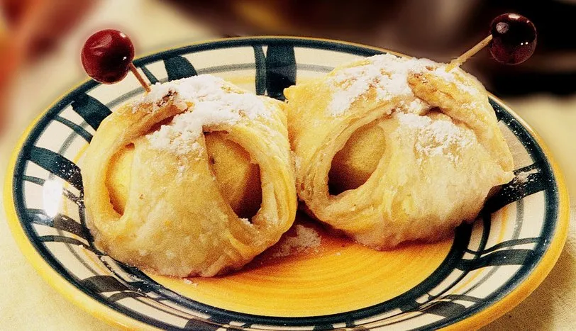 Elmaların kabuklarını soyup, kabak oyacağı ile ortasındaki çekirdekli kısmı çıkarın. Ceviz, tarçın ve toz şekeri karıştırıp, elde ettiğiniz harcı elmaların içine doldurun. Milföy hamurlarını elinizle hafifçe açıp, her bir milföy hamurunun ortasına elmayı bütün halde koyun. Bohça biçiminde katlayın. Pişerken açılmasın diye ortasına kürdan batırın. 170 derece fırında üzeri pembeleşene dek pişirin. Pudra şekeri serpip, servis yapın.