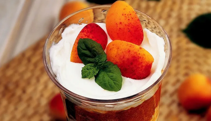 Kayısıların çekirdeğini çıkarıp pudra şekeri ve bademle birlikte blenderden geçirin. Krem şantiyi soğuk sütle çırpın. Kupların yarısına kadar kayısılı karışımdan dökün. Üzerine 2 çorba kaşığı krem şanti ekleyin. Tekrar kayısılı karışım ve krem şanti kullanabilirsiniz dökün. Üzerini kayısı dilimleri ile süsleyin. Buzdolabında soğutup servis yapın.AŞÇININ NOTUBu tatlıyı şeftali ile de yapabilirsiniz. Badem yerine farklı kuruyemişler kullanabilirsiniz.