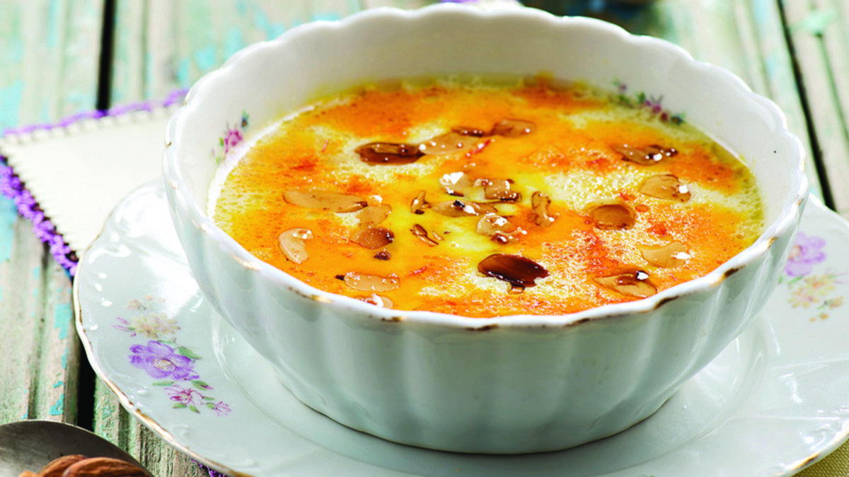 Geriye kalan safranlı suyu krema ile birlikte çorbaya ekleyin. İyice karıştırıp altını kapatın. Çorba sıcakken üzerine ayırdığınız bademleri serpiştirin. Safran suyu gezdirip servis yapın.